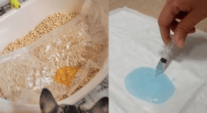 ポイント: 固まる猫砂や、吸収性の高いシーツに尿を吸わせてしまうと検査に適しません。猫の場合は、通常の猫砂ではなく、この方法で尿を溜めるように工夫してください。